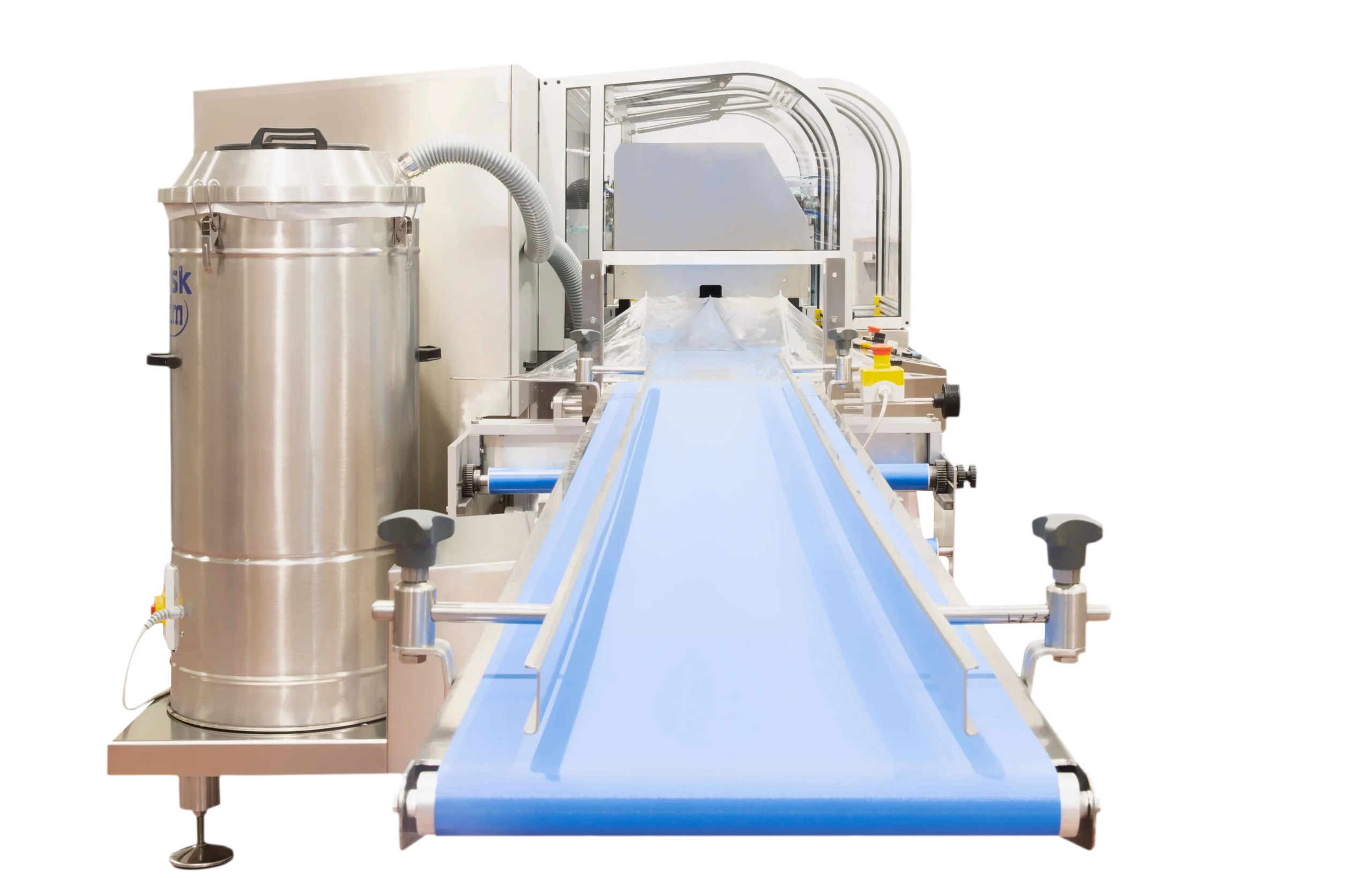 Todas las funciones de la máquina están gestionadas por una electrónica sofisticada pero fácil de usar. El suministro del producto se realiza mediante una cinta transportadora que se suministra con la máquina. Esta máquina envasadora se puede integrar con cualquier automatización de carga y unidad de final de línea, incluso para volúmenes de producción extremadamente altos.