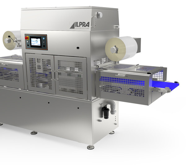 El rendimiento del molde y la rapidez del ciclo permiten que esta termoselladora sea una solución eficaz para grandes producciones. La máquina lleva instalada de serie la tecnología CPS («Constant placement system»): gracias a la sincronización entre las mordazas y la cinta de alimentación, permite alcanzar el máximo potencial de producción de la máquina. Esta máquina puede procesar una gran variedad de aplicaciones de envasado, como fruta, carne, platos preparados, pescado, etc.