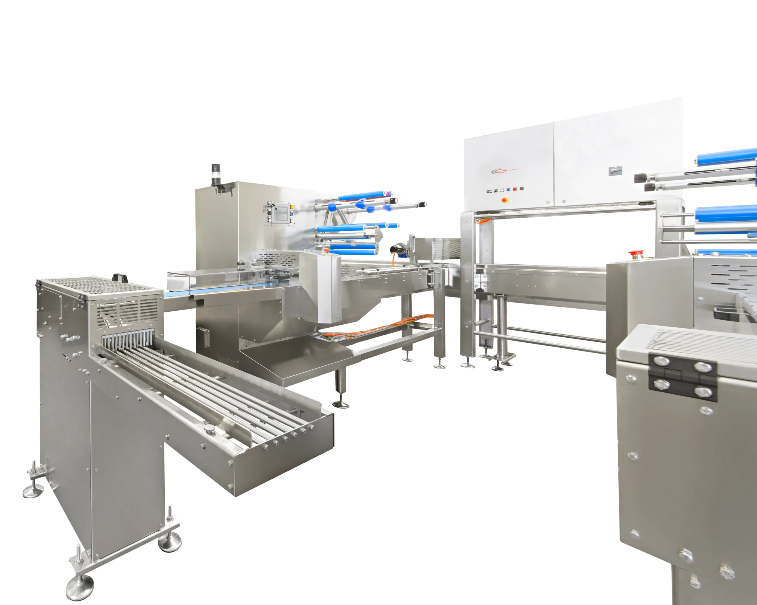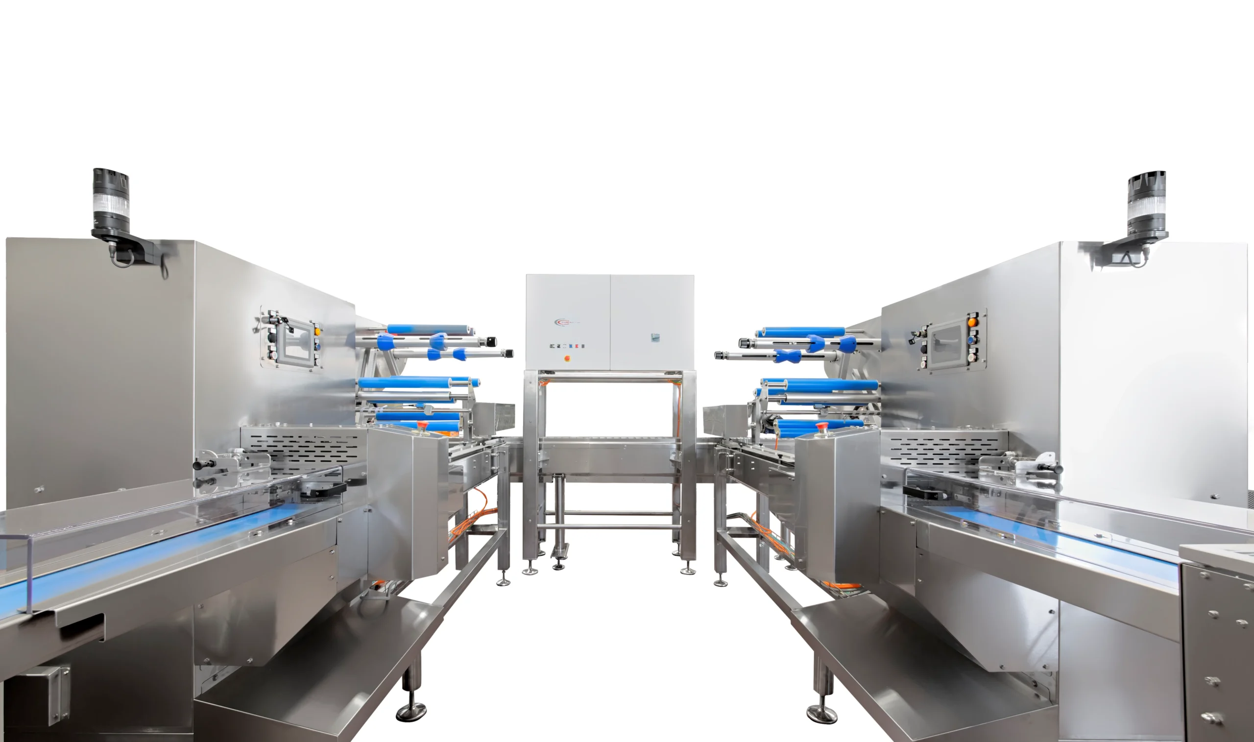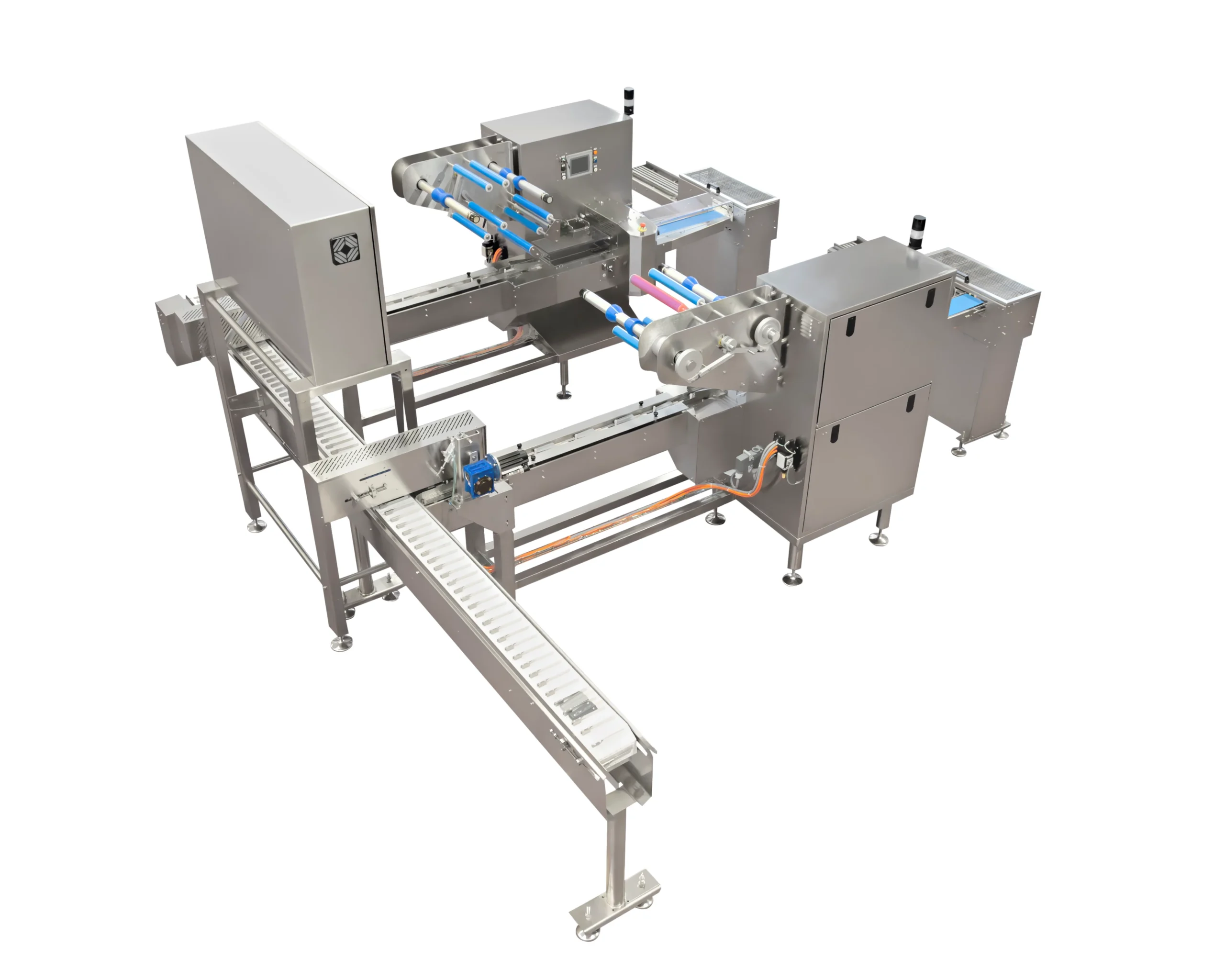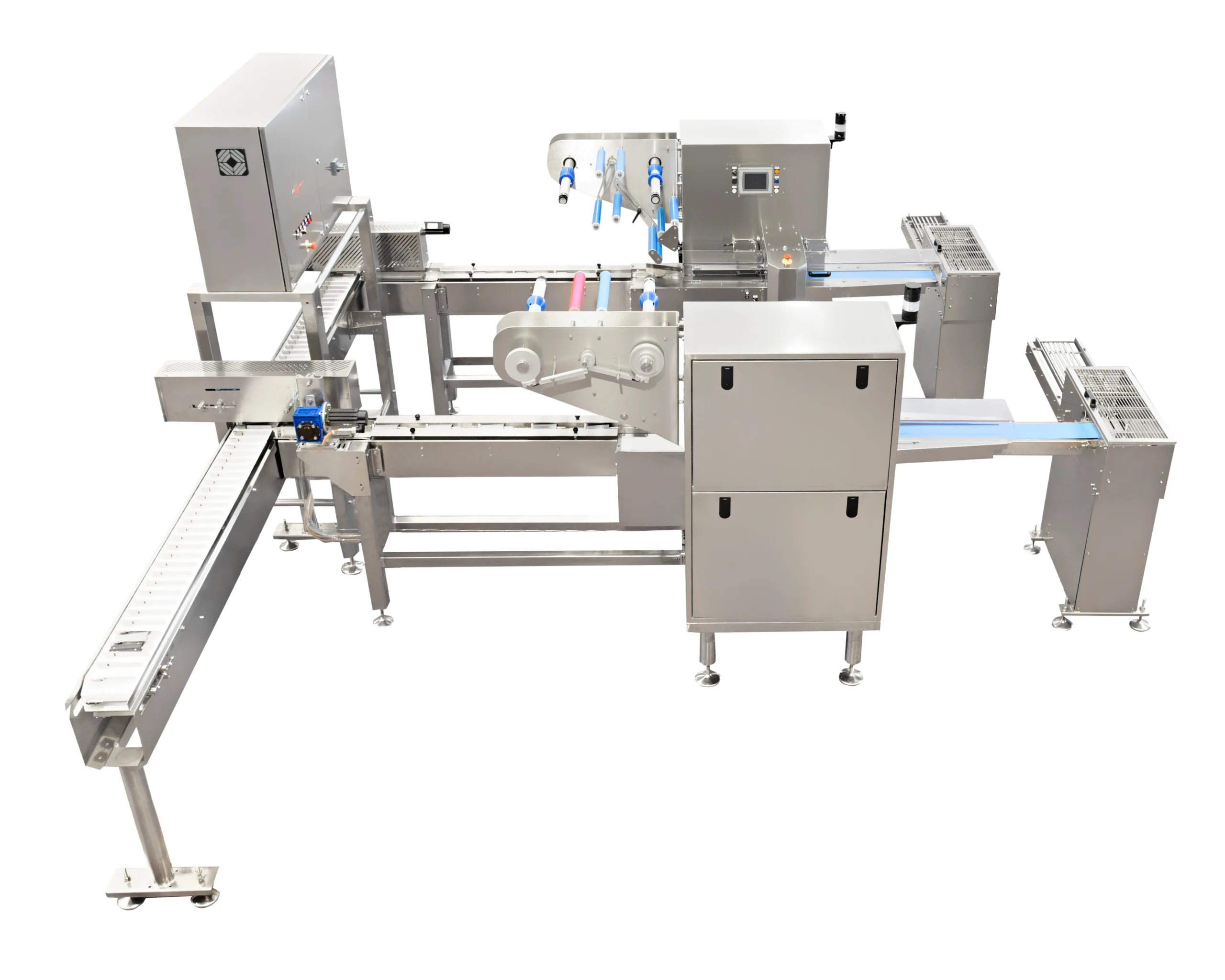 Ideal para pequeñas y medianas producciones, está diseñado para satisfacer las necesidades de la industria alimentaria y no alimentaria. Esta envasadora, con sistema rotativo de “corte y sellado”, está equipada con un PLC de última generación para control de temperatura, diagnóstico integrado, memorización de diferentes formatos (recetas) y pantalla táctil multifunción multilingüe.