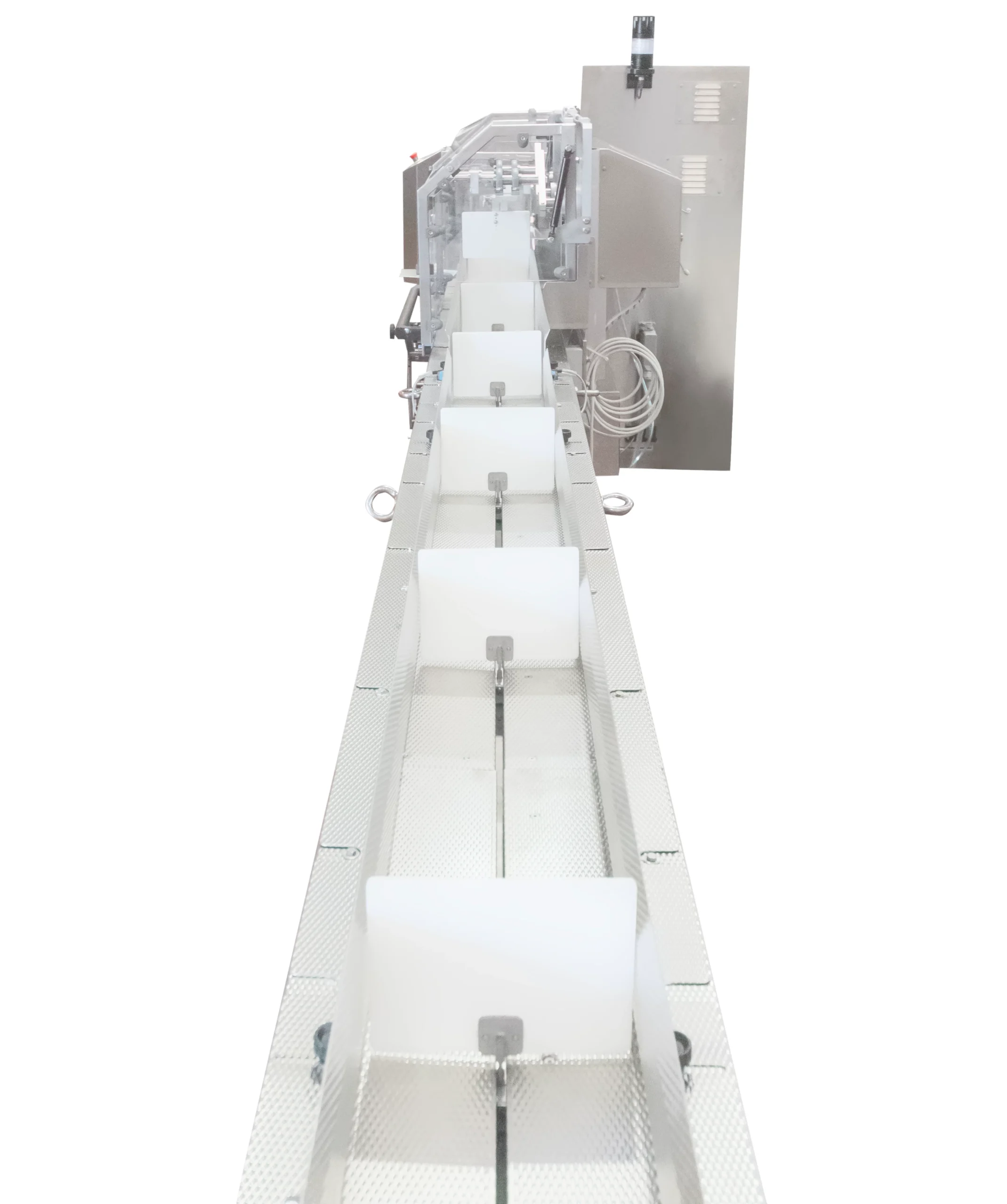 Los mecanismos de accionamiento están colocados separados del proceso de envasado. Este concepto de diseño evita que los residuos del procesamiento y del producto acaben en los mecanismos de accionamiento. Esto reduce los tiempos de limpieza, mejora la vida útil de los componentes y garantiza las mejores condiciones higiénicas y un fácil acceso para el mantenimiento.