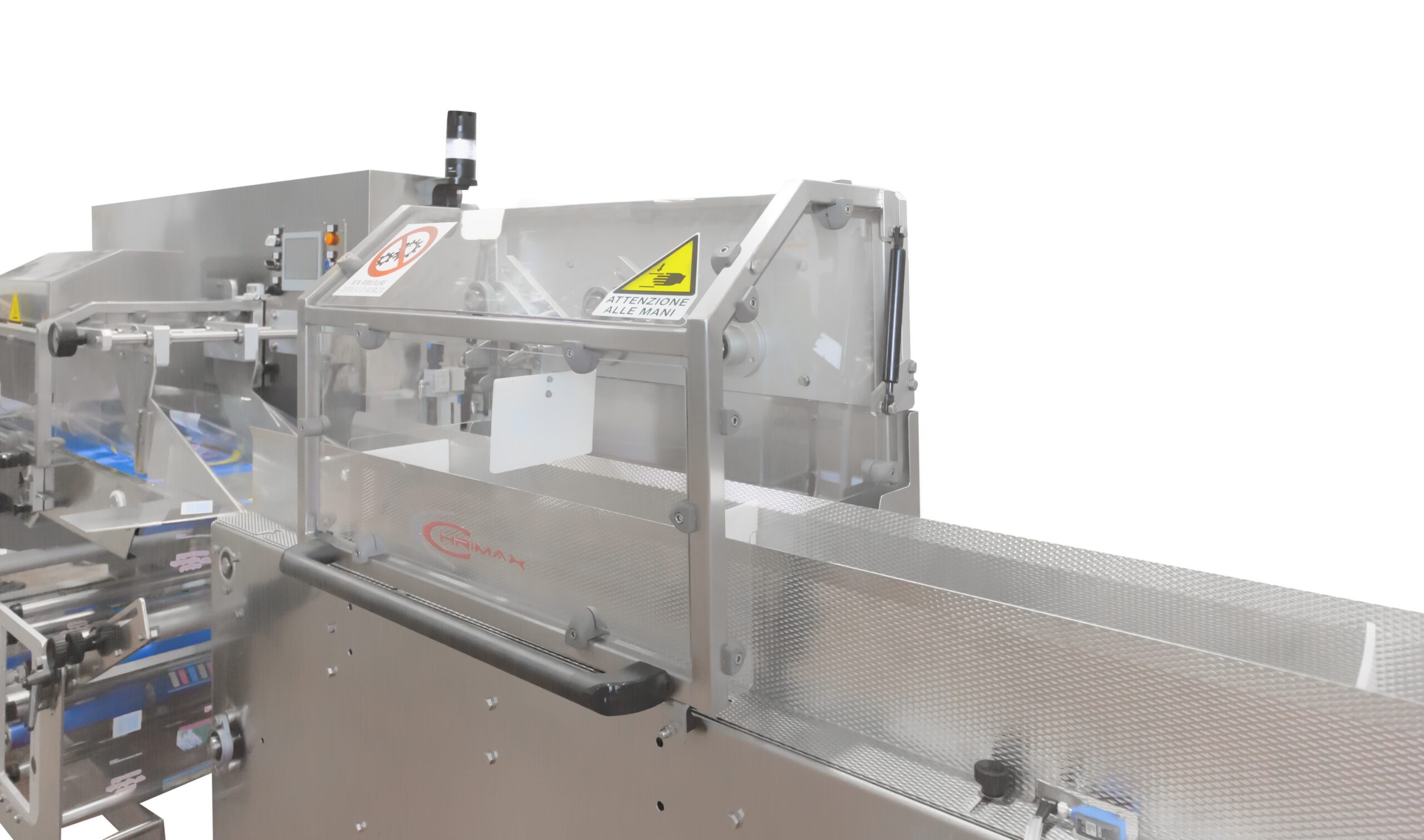 La electrónica sofisticada pero fácil de usar gestiona todas las funciones de la máquina a través de una interfaz de pantalla táctil externa. La alimentación del producto se realiza a través de una cinta transportadora, ya suministrada con la máquina.